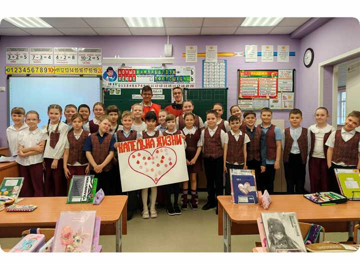Наши активисты посетили три класса, где провели интерактивный классный час на тему «Капелька жизни». Школьники узнали об основах донорства крови, его значении для организма человека и роли в обществе. Ребята не только получили новые знания, но и смогли понять, какие качества отличают настоящего донора — доброту, отзывчивость и готовность помогать другим.
